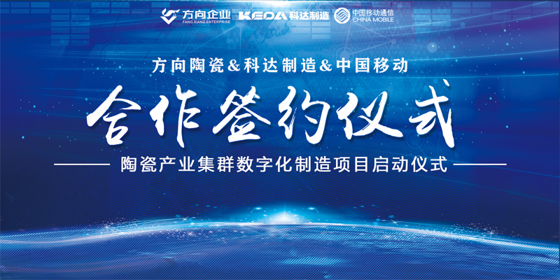 2月8日下午,方向陶瓷&科達(dá)制造&中國移動合作簽約儀式在方向企業(yè)生產(chǎn)基地辦公大樓隆重舉行,攜手啟動“陶瓷產(chǎn)業(yè)集群數(shù)字化制造項目”,共同開啟智能制造新征程。