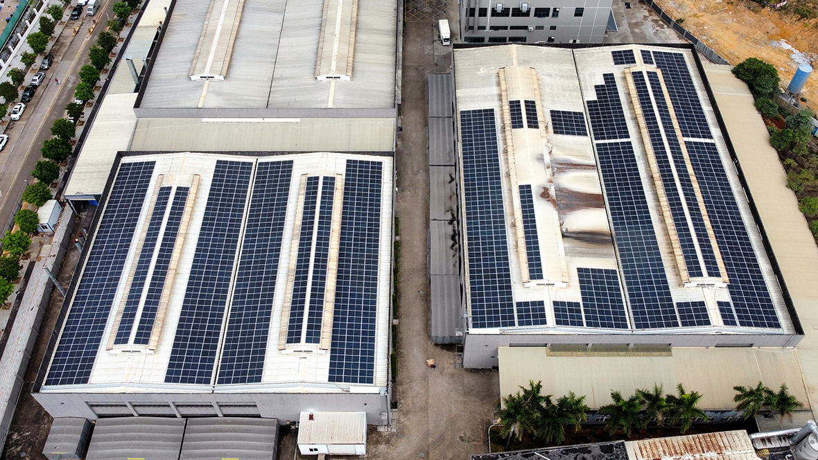 項(xiàng)目位于廣東省東莞市寮步鎮(zhèn)黃沙西路32號,采用固定式支架和夾具導(dǎo)軌安裝,利用廠區(qū)內(nèi)2座屋頂布置太陽能光伏板,建設(shè)分布式光伏電站,上網(wǎng)方式為“自發(fā)自用,余電上網(wǎng)”。
