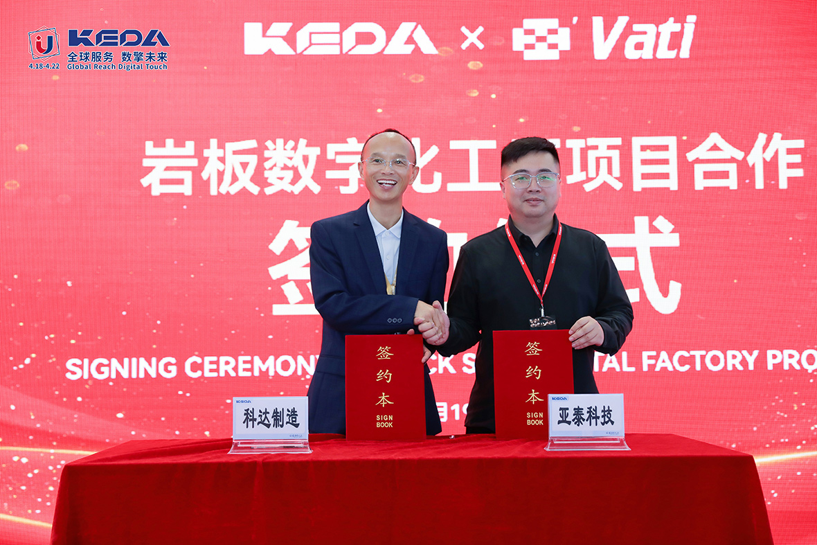 繼2024佛山潭洲陶瓷展首日科達與河南嘉北科技簽約啟動甄陶MOM3.0項目之后,科達陶機數字化業務再下一城,4月19日,科達陶機與湖南亞泰科技有限公司(以下簡稱“亞泰科技”)成功簽約,啟動了巖板數字化工廠項目。