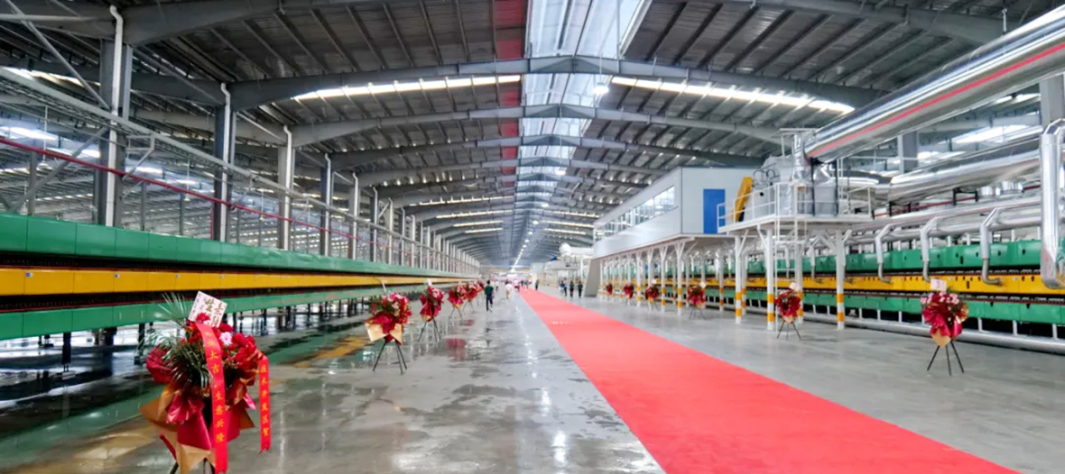 金綠能第六代發泡陶瓷生產線是科達與金意陶集團合作的第5條發泡陶瓷生產線,該線設計日產能350m³,窯爐配置了雙層冷卻窯,全線長度近888米,創下行業新的歷史紀錄。