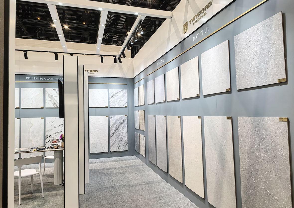 特福國際攜規格為600×600(mm)和600×1200(mm)的拋釉磚,以及300×600(mm)墻磚為觀眾帶來了自然與空間的極致享受。憑借著非凡的魅力和出色的品質,成功收獲眾人的贊譽。特福國際精心打造的展位,以現代極簡風格成為展會中一道靚麗的風景。