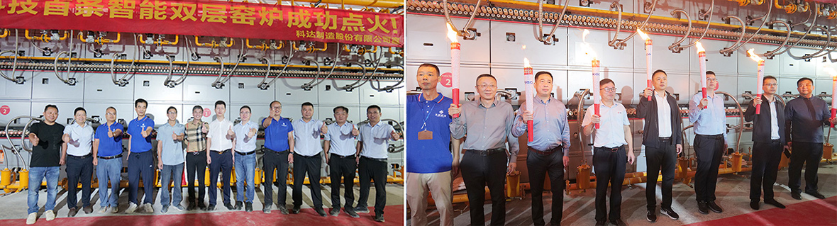 科達陶機為天欣科技定制的2.4米內(nèi)寬雙層窄體窯,是湖南產(chǎn)區(qū)首條雙層窯。雙層窯在保證產(chǎn)量的同時,單層單燒有助于減少輥棒印以及窯體散熱,并且應(yīng)用了科達陶機多項專利技術(shù),更節(jié)能環(huán)保,窯爐管理更智能。