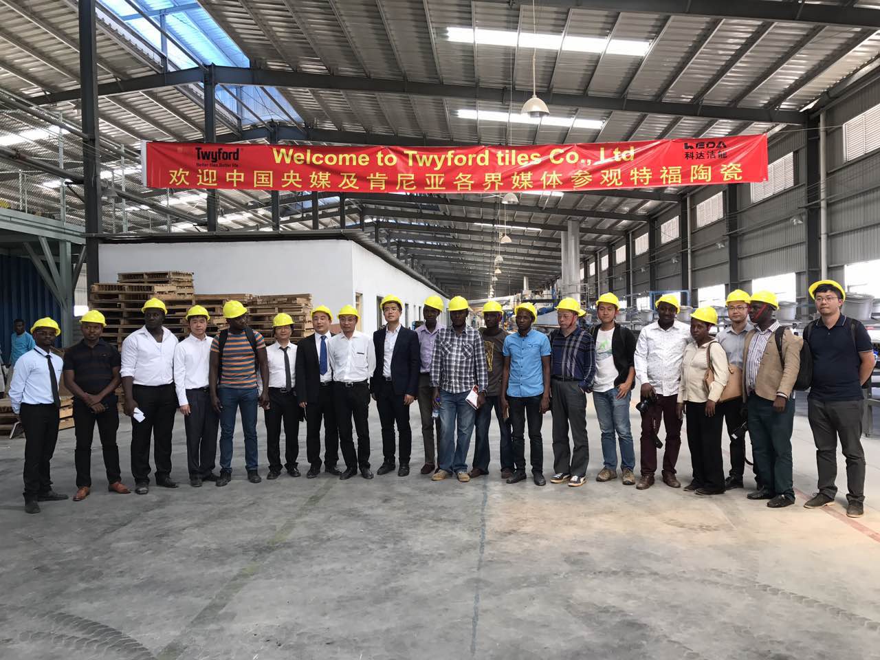 為配合“一帶一路”國際合作高峰論壇進行宣傳,央視主流媒體考察采訪響應“一帶一路”國家發展戰略的優秀企業海外基地。肯尼亞作為“一帶一路”非洲重要支點,5月12日,中國駐肯尼亞大使館相關領導、中國央媒及肯尼亞知名媒體一行圍繞這一議題參觀考察了科達潔能與廣州森大合資建設的肯尼亞特福陶瓷廠。科達潔能副總裁鐘應洲、特福陶瓷總經理李瑞欽會見了代表團一行。