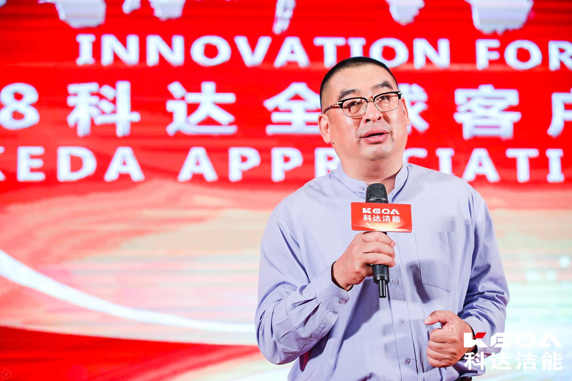 科達董事長邊程致歡迎詞,他說,每年的這一天都是科達最幸福的日子,因為有來自世界各地幫助關心支持科達的人士歡聚于此。截止到2017年為止,科達向全球投放了壓機12600多臺,窯爐600多條,拋光線2000多條,磨邊線接近4000條,自動打包線2000條,2017一年科達售出壓機554臺,窯爐137條,拋光線169條,磨邊機457條,包裝線334條,可以說在出貨量上科達已經做到了全球陶瓷機械的第一,下一步科達要進一步走向世界。2017年科達的出口比例達到40%,未來三到五年時間出口比例有望達到三分之二,科達是中國陶瓷行業養大的最大孩子,“我們期盼著用三到五年成為全世界陶瓷行業養大的最大的孩子,回報全球客戶,請繼續給予我們支持,謝謝你們!”