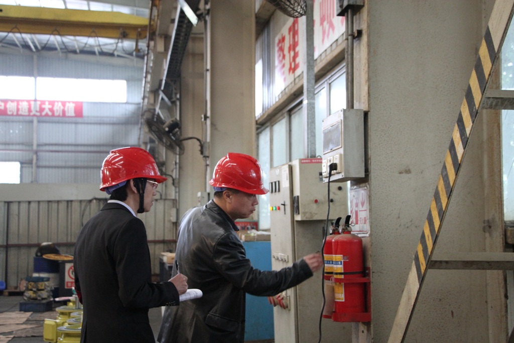 周總率安檢人員進車間、查倉庫、入廚房,先后仔細(xì)檢查了石材車間、深加工車間、結(jié)構(gòu)件車間、光伏電站控制室、物管部油漆倉庫、整線工程油漆倉庫、生產(chǎn)垃圾池及公司飯?zhí)煤髲N等重點區(qū)域。檢查人員對現(xiàn)場檢查中發(fā)現(xiàn)的消防、電氣、設(shè)備防護等隱患一一登記,周總還在現(xiàn)場對安全隱患提出了具體整改提出了要求和指導(dǎo)意見。