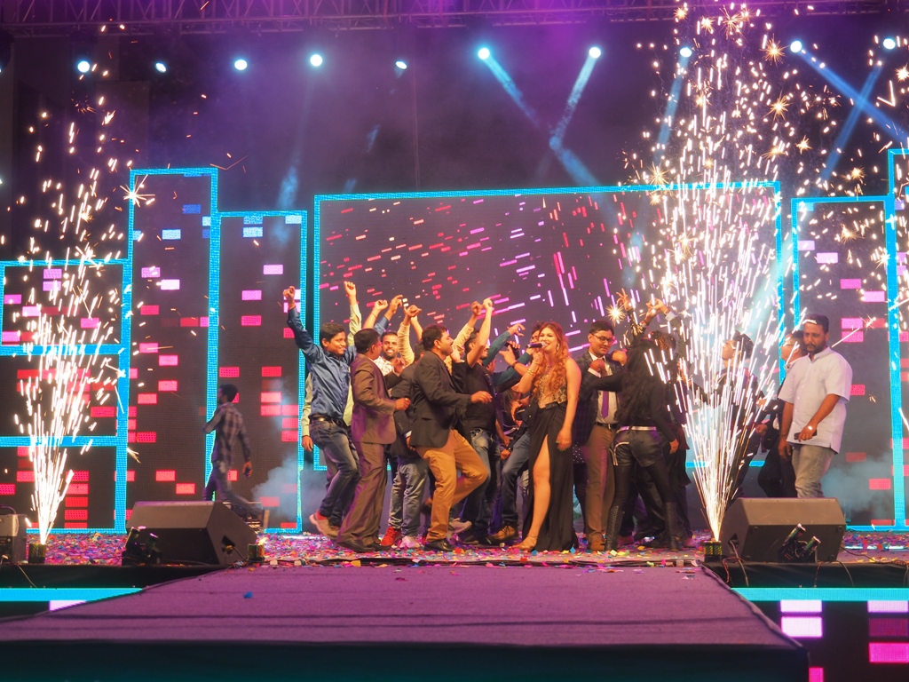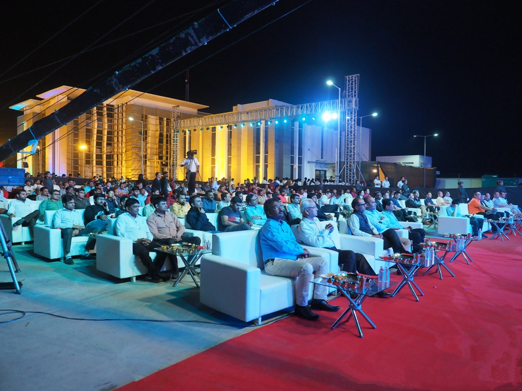 2018年3月10日晚,位于MORBI的科達印度子公司新落成的廠區沉浸在一片歌舞歡騰的海洋,科達印度子公司開業答謝晚宴在此盛大舉行。古吉拉特邦墻磚協會會長Mr.Nilesh、古吉拉特邦拋光磚協會會長Mr.K.GKundaria、印度Simpolo Mr. Jitubhai、Sunshine Mr. Jagdishbhai、Shreeji Mr. Haribhai等印度陶瓷協會領導及客戶代表500多人出席答謝晚宴。科達潔能董事長邊程、總裁吳木海、恒力泰總經理楊學先、國際營銷總監劉曉東、印度銷區總經理鄒為一、配件服務事業部總經理隋旭東、佛山科達陶瓷科技有限公司總經理王德良、副總經理蔡偉勇、印度代理Mr Venkatesh、泰國代理Mr Prasertsak以及印度子公司全體員工參加了晚宴。