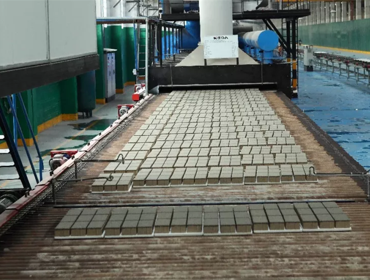 6月16日,由科達潔能為廣西新舵陶瓷承建的透水磚生產線正式出磚,產品的規格為100×200×55mm,當天日產量達到1700平方米,優等品率超過98%。這條生產線配備了兩臺KDT1800壓機和科達透水磚專用輥道窯,窯長289米,內寬2.4米。