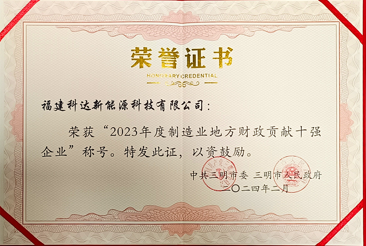 2月18日,福建科達新能源科技有限公司(以下簡稱“福建科達新能源”)傳來喜訊,公司憑借在地方財政貢獻方面的卓越表現,被評為“三明市2023年度制造業地方財政貢獻十強企業”。