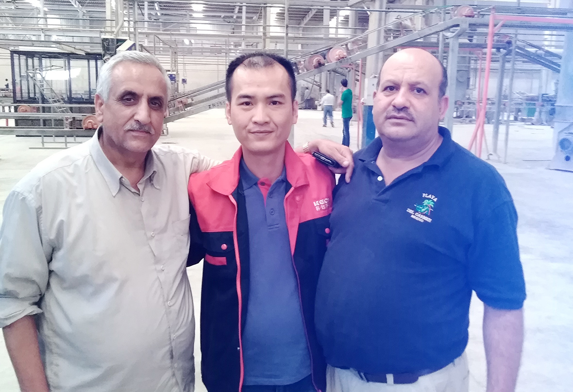 敘利亞一客戶2013年購買了科達陶機兩條拋光線和兩條干磨線,設備到達客戶工廠以后,由于時局動蕩,公司無法派出服務人員前去安裝調試,設備就一直閑置了下來。面對當時戰火紛飛的敘利亞,陳日富毫不畏懼,主動前往。在到達敘利亞的當晚,他就聽到重機槍的聲音,一夜無眠。第二天在前往客戶工廠的路上,經過無人區,看到了陣亡的士兵尸體被簡單地掩埋在路邊沙土里。盡管面臨這樣的危險環境,他仍然在敘利亞客戶的大力配合下,完成了兩條拋光線和兩條干磨線的安裝調試工作。原本一個月的工作量,他只用了10多天就完成了,并順利通過客戶驗收并平安回國。