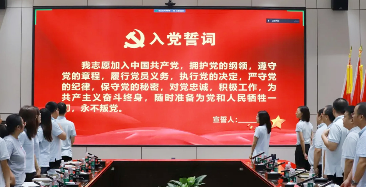 在莊嚴肅穆的氣氛中,新入黨及轉正黨員進行入黨宣誓,全體黨員一起重溫入黨誓詞。
