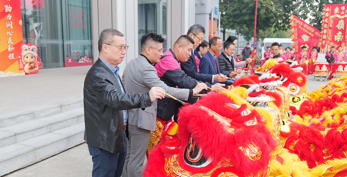 隨后,公司董事、總經理楊學先,董事、海外建材業務板塊董事長沈延昌,董事、海外建材業務板塊總裁李躍進,副總裁曾飛、周鵬,審計監察總監彭衡湘共同為醒獅點睛。剎那間,六頭醒獅仿佛被賦予了生命,它們雙眼炯炯有神,在鑼鼓的助興下,瞬間精神抖擻。它們身姿矯健,動作敏捷,騰躍翻飛之間,盡顯其霸氣與靈動。與此同時,醒獅與觀眾互動時,又俏皮逗趣,引得現場笑聲連連。