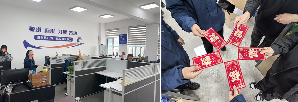 儀式開始前,公司董事會秘書彭琦及財務總監羅麟化身成“財神爺”給大家派發新春吉慶禮品。現場熱鬧非凡,不僅充滿濃濃的開工儀式感,更增添了新年的喜氣。