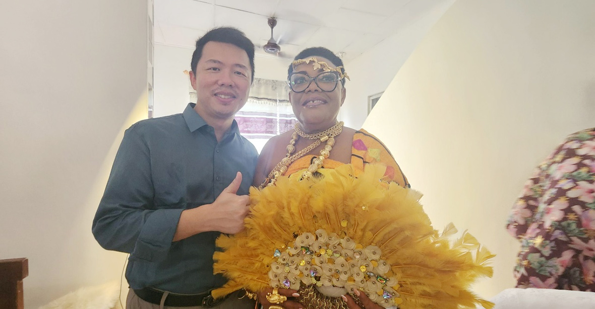 加納當地時間2月21日,Nyankorm社區享有較高聲譽的Queen Mother Nana Akosua Gyamfiaba II和Nana Edu Kotsia III舉辦地方傳統婚禮,特福加陶商務經理衛志選和行政經理Eugene Komey代表公司應邀出席,并為其準備了誠意滿滿的禮物與祝福。據悉,在加納文化中,“Queen Mother”(女王母親)是一個具有重要地位和影響力的稱號,通常授予在社會、文化和政治領域有杰出貢獻的女性。