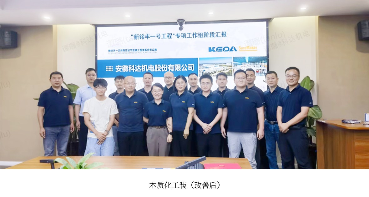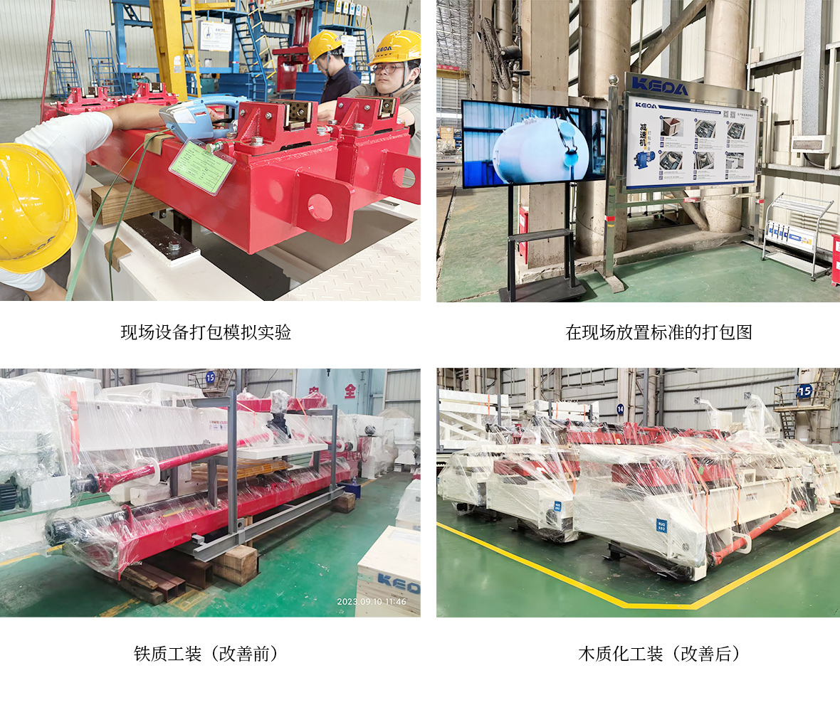 為提高海外打包效率及包裝產品質量,在2024年9月,安徽科達機電生產供應中心正式成立“海外打包專項組”,定向實施改善海外打包工作的升級優化,將原有的鐵質工裝為基礎逐步轉為木質化打包,最終在2024年12月完成既定的目標,即設備打包木質化、木箱標識完善、設備打包標準制定、發貨清單標準、打包標識規范等。經測算,整線打包效率比原來提高30%,成本減少1.6元/整線(稅前)。
