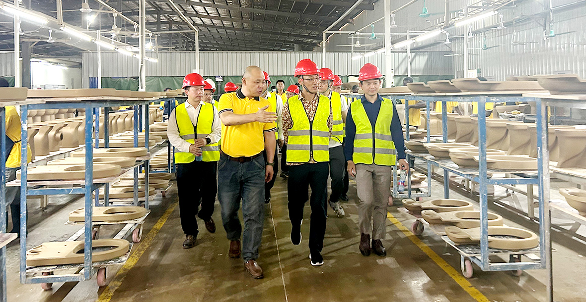 會談結(jié)束后,童大使在公司高管的陪同下參觀了K6瓷磚生產(chǎn)線和潔具生產(chǎn)線,對企業(yè)先進的生產(chǎn)設(shè)備和高效的運營管理給予了高度評價。