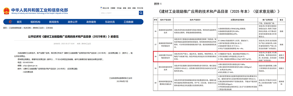 近日,由德力泰科技申報、經中國建材機械工業(yè)協(xié)會推薦的“高能效數字化雙層輥道窯”成功進入國家工信部《建材工業(yè)鼓勵推廣應用的技術和產品目錄(2025年本)》。