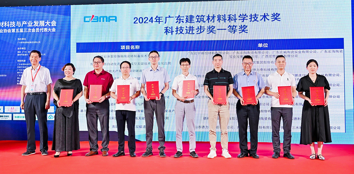 其中,科達制造的“陶瓷板輥壓成型技術與成套裝備研發及產業化”項目、德力泰科技參與的“建筑陶瓷零碳燒成技術與零碳燒成瓷磚及生產應用示范”項目一同獲得“廣東建筑材料科學技術獎科技進步獎特等獎”;科達制造的“基于AI視覺的建筑陶瓷墻地磚分級分色智能檢測線技術研發及產業化”項目、德力泰科技的“高能效大產量發泡陶瓷隧道窯成套裝備”、“高能效數字化雙層輥道窯”項目榮獲“廣東建筑材料科學技術獎科技進步獎一等獎”;科達制造的“陶瓷行業重載高精度智慧導引車(AGV)與調度技術的研發及產業化”項目、佛山科達機電的“鋰云母焙燒隧道窯高效節能智能控制關鍵技術研發及產業化”項目榮獲“廣東建筑材料科學技術獎科技進步獎二等獎”。