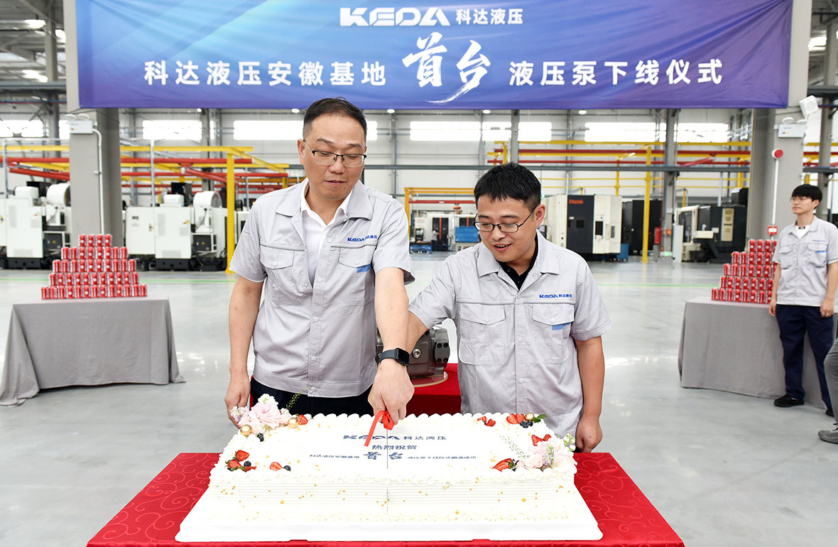 隨后,在全場矚目下,科達(dá)液壓總經(jīng)理陳孝輝和常務(wù)副總經(jīng)理劉正富共同為首臺液壓泵揭幕。此次下線的K4V200液壓泵是科達(dá)液壓廣受市場歡迎的產(chǎn)品。該產(chǎn)品凝結(jié)了研發(fā)技術(shù)團(tuán)隊的智慧與汗水,從設(shè)計到生產(chǎn)全流程彰顯了科達(dá)液壓“精益求精”的匠心精神,是公司核心研發(fā)與制造實(shí)力的集中體現(xiàn)。儀式最后,陳總和劉總與全體員工共同分享象征著成功與喜悅的蛋糕,期望科達(dá)液壓的未來更加甜蜜與美好。