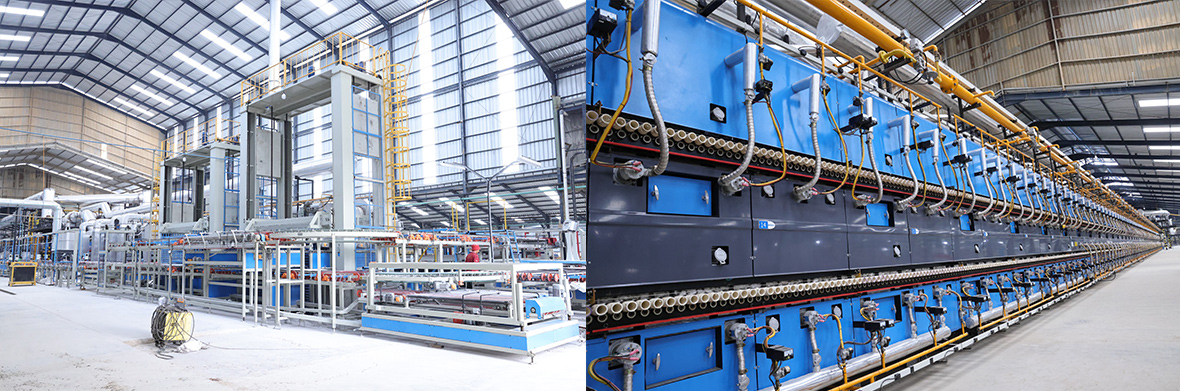 ▲海外首條超400米長日產(chǎn)4萬㎡輥道窯