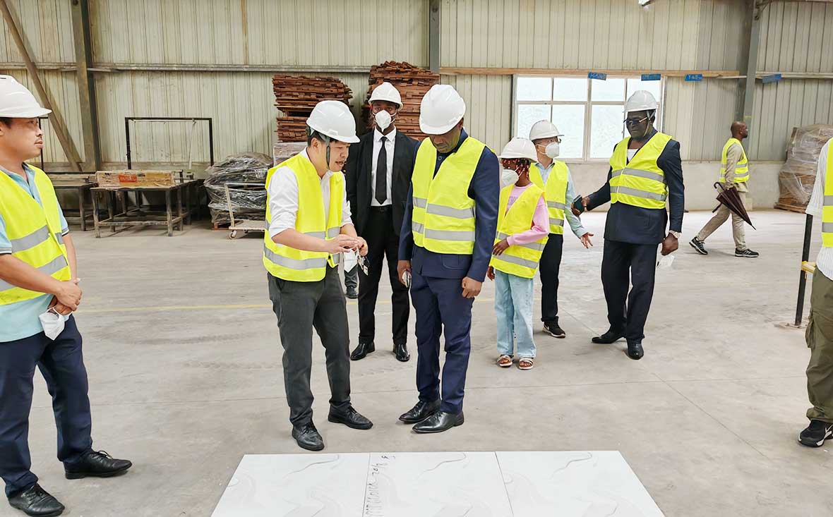 在調研過程中,特福喀陶總經理韓杜詳細介紹了公司的經營布局、生產工藝以及未來發(fā)展規(guī)劃等。中非經濟共同體央行行長Yvon Sana Bangui詳細了解了瓷磚原料加工、燒制成型及質檢全流程,并觀摩產品陳列。他對公司的生產工藝、產品質量及智能化水平表示高度認可,強調其“遠超區(qū)域行業(yè)標準”。