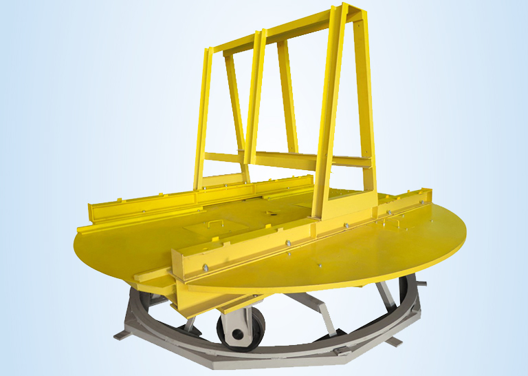 主傳動(dòng)采用兩級(jí)蝸輪桿減速機(jī)通過(guò)鏈條帶動(dòng)鏈盤(pán)傳動(dòng),設(shè)置正反兩個(gè)放料位,可正反180旋轉(zhuǎn),單邊承重5噸。
