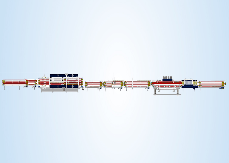 劃切分條磨邊線是一條干式劃切生產(chǎn)線。其適用磚面無凹凸且厚度≤ 12mm 的 陶瓷磚切割分條。根據(jù)不同產(chǎn)量的要求,可選用“劃切 + 頂斷”或“劃切 + 輥斷” 的分條方式。