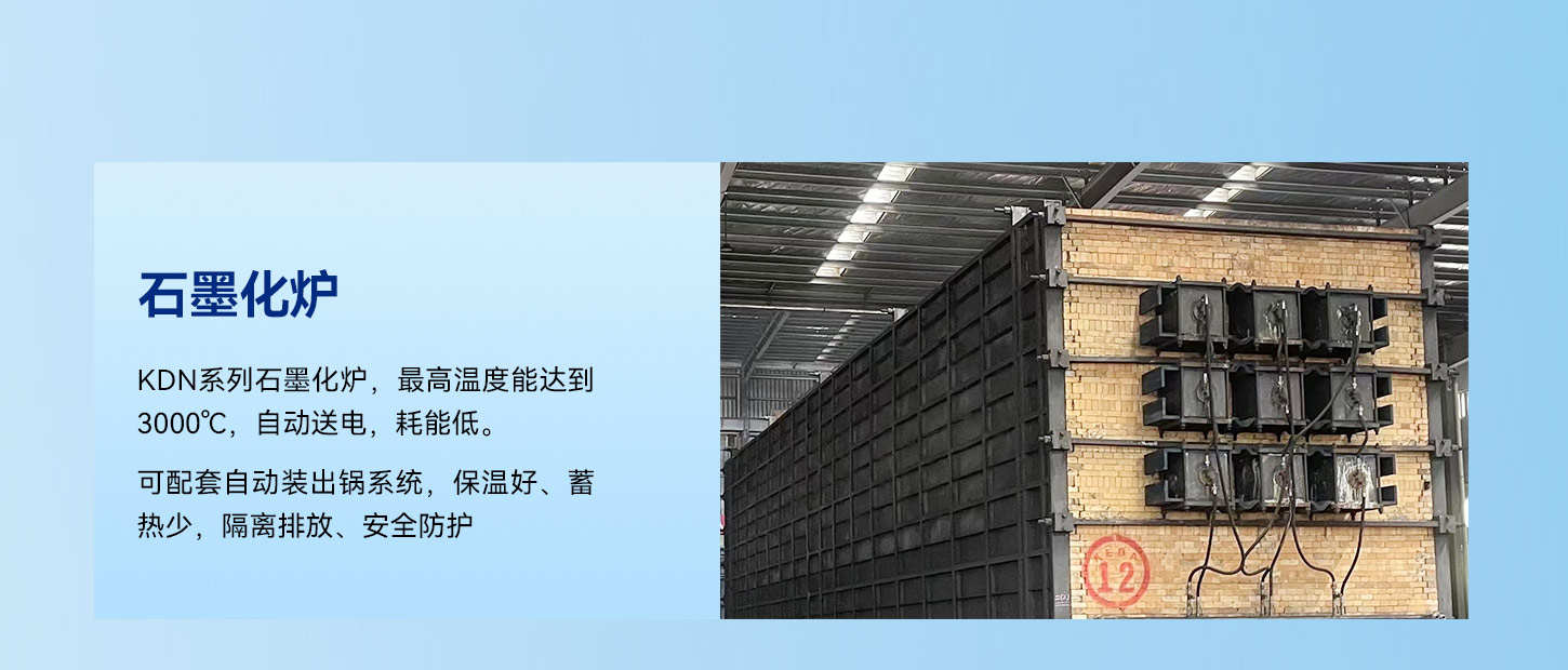 KDN系列石墨化爐,最高溫度能達到3000℃,自動送電,耗能低; 可配套自動裝出鍋系統,保溫好、蓄熱少,隔離排放、安全防護。