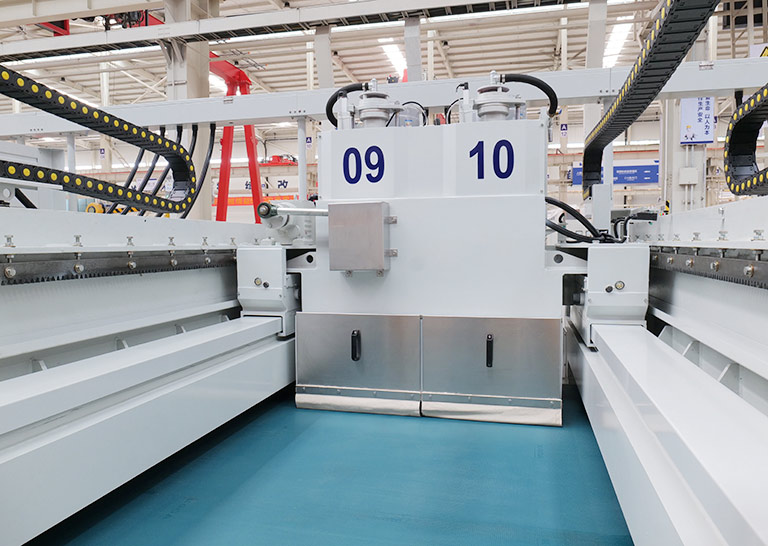 配置多段擺動拋光頭,通過人機界面根據磨具排號選擇橫梁擺動方式,采用順序擺,一字擺,交叉擺等多段擺動方式,能夠有效解決高端石材拋光過程中拋光不均、漏拋等質量問題,實現拋光面的高效覆蓋。